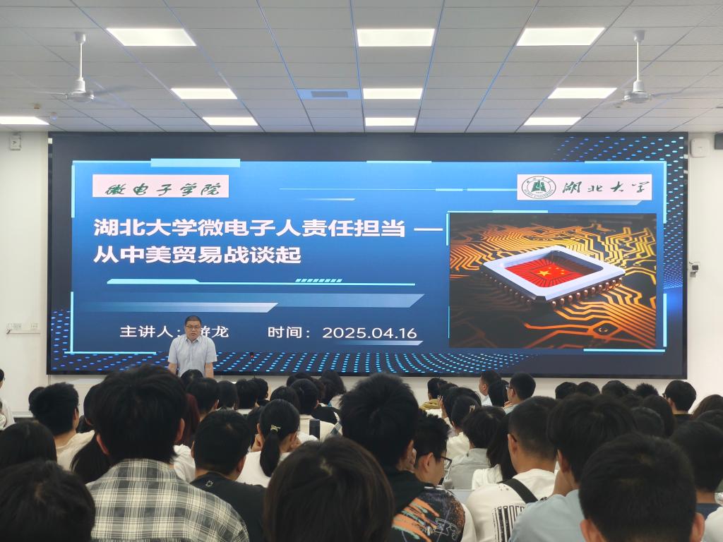 游龙经理从中美贸易战谈起,深入剖析其背后的核心因素——科技、资本与市场,强调高科技领域的竞争是当前国际竞争的重中之重,尤其是半导体技术的封锁与反制,使得科技成为主战场。游龙回顾半导体产业的发展历史,深情讲述了老一辈科研工作者信念坚定、敢为人先、无私奉献的精神,指出这不仅是对历史的回顾,更是当代员工和科研工作者的楷模。他呼吁beat365亚洲体育官方网站本科生继承自力更生、无私奉献的科研信仰,在半导体领域努力拼搏,为国家科技事业贡献更多力量,肩负起时代赋予的责任与使命。
