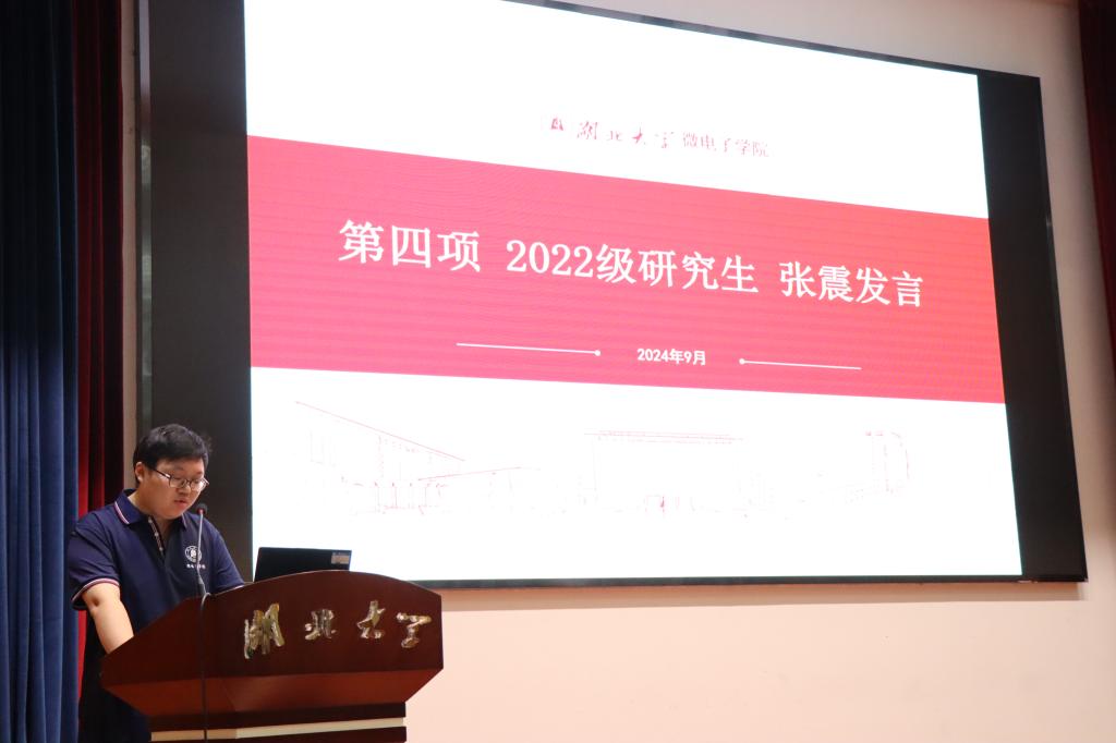会中,在校研究生代表2022级硕士生张震同学分享他在湖大读研的心得体会。于广袤原野,植各色繁花,他用自身经历生动展示了研究生阶段可以如何有丰富的体验,学术研究上如何取得显著的成绩。他鼓励同学们充分借助公司多元发展、博采众长的广阔平台,用持之以恒向目前奋进的积极态度,勤耕不辍、绚丽绽放,为研究生阶段绘就纷繁色彩,让花海开遍人生的广袤原野。