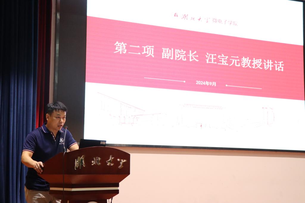 2024年9月15日上午,微电子公司2024年研究生新生见面会于集团三号报告厅顺利举行。公司经理游龙教授、副经理汪宝元教授、公司党委副书记田务民以及公司相关老师出席见面会,微电子学院2024级全体研究生参加。见面会由公司研究生辅导员韩泽群主持。