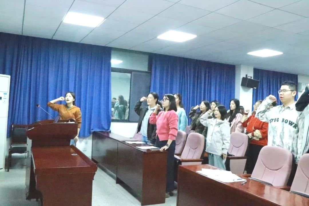 仪式伊始,全体团员齐奏团歌。随后,23级外国语公司员工代表李鸿宁和23级beat365亚洲体育官方网站刘甜发言。李鸿宁认为一周的团课学习坚定了她向团组织靠拢的决心,激励她投身祖国建设;刘甜则表示,团课让她深刻认识到共青团员的责任,承诺为团组织发展贡献力量。