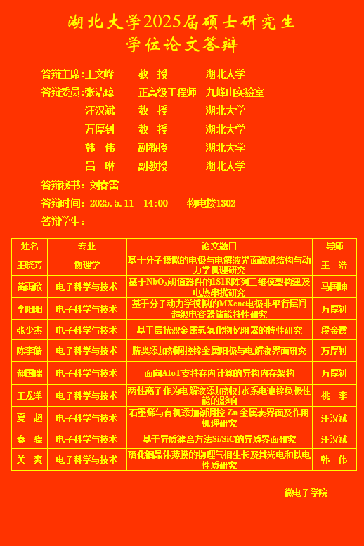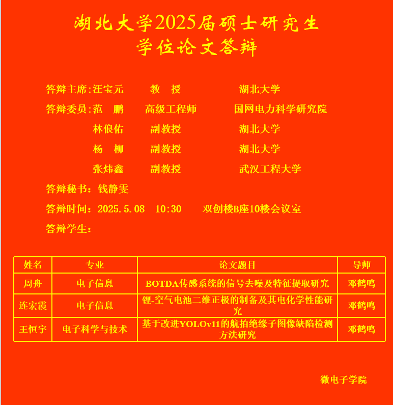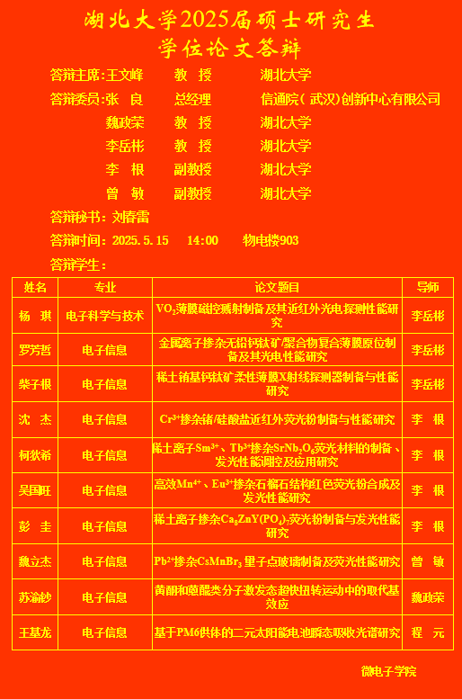 beat365亚洲体育官方网站2025年上半年研究生答辩公告(三)