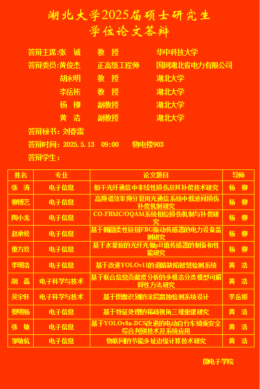 beat365亚洲体育官方网站2025年上半年研究生答辩公告(二)