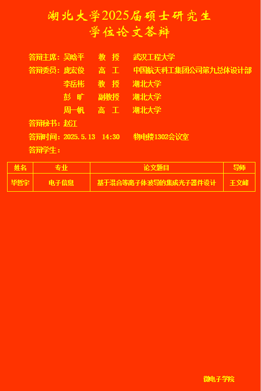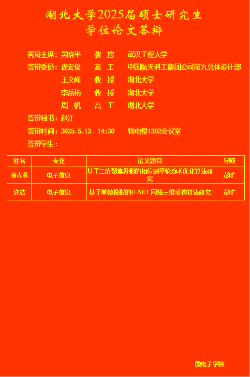 beat365亚洲体育官方网站2025年上半年研究生答辩公告(四)