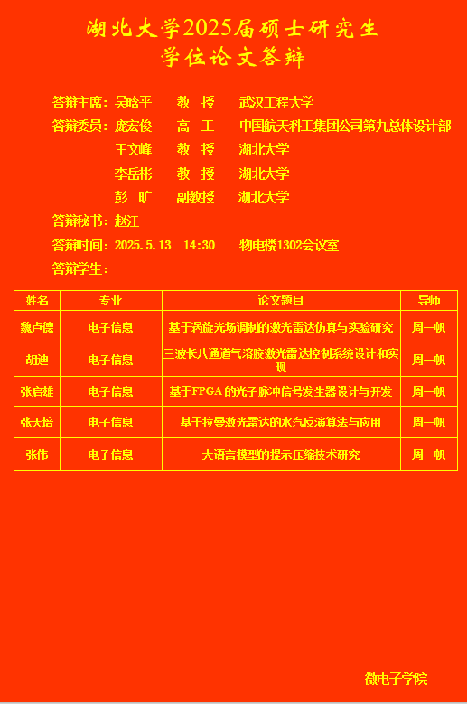 beat365亚洲体育官方网站2025年上半年研究生答辩公告(五)