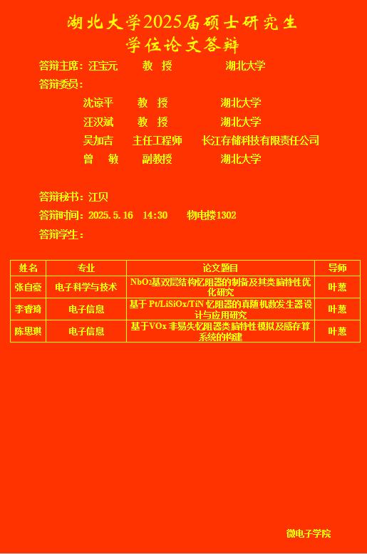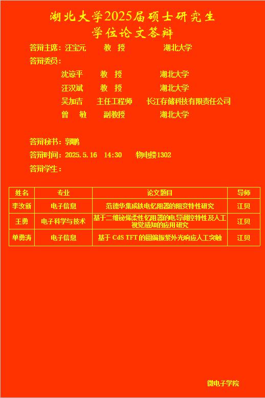 beat365亚洲体育官方网站2025年上半年研究生答辩公告(五)