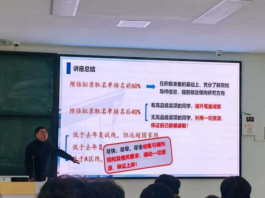 2022级考研备考指导讲座于3月2日晚在教4-509举办,本次讲座聚焦考研政策解读、院校专业选择策略及备考方法指导,吸引了众多2022级意向考研学子踊跃参与。主讲老师结合近年考研趋势与数据,详细解析了国家线、院校分数线的趋势及0854专业竞争态势,引导员工理性评估自身实力与目标匹配度。